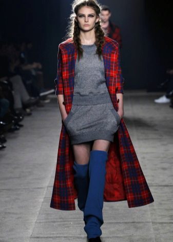A check coat is one of the trends of the autumn-winter season. Both traditional checkered ornament and rebellious, “grunge” motifs are popular. Grunge style involves a mix of several types of cells in one product, while the cell can be of different colors and sizes. All together, it looks pretty stylish and unusual.