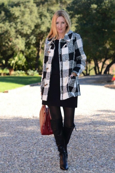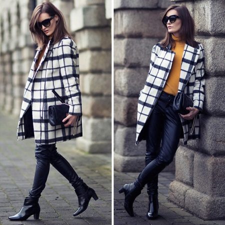 Calm classic black and white combination is suitable for any woman. A coat made in such a color scheme is much easier to put into a casual wardrobe than a coat in a red or blue check. Choose classic or even models that suit any type of figure.