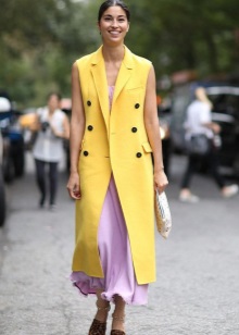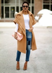 The old, still forgotten trend of the 1960s - sleeveless coat is rapidly breaking into modern fashion. In itself, such a product resembles a long sleeveless jacket made of dense material and often complemented by a voluminous strict collar. This is a great option for those who spend enough of their time in the office or at business events, since with such a coat it will not be difficult to create an effective image of a business woman.