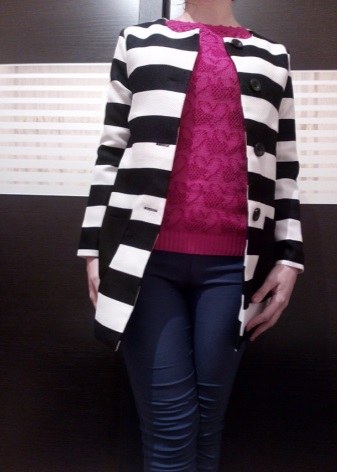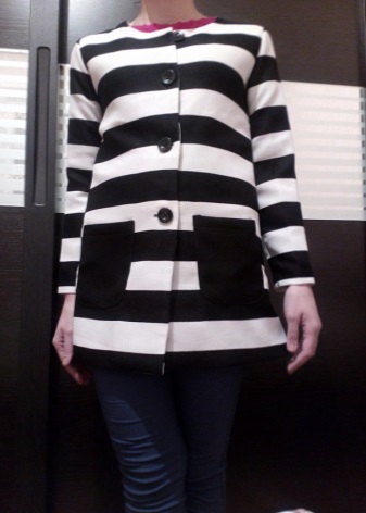 This year, striped coats are extremely popular models. Famous designers presented the world absolutely amazing products, where this print is given the most attention. It is created not only with the help of bright colors on the main background of the coat material, but also with the help of inserts and inserts made of fur, shiny ribbons, various beads or even soft plastic.