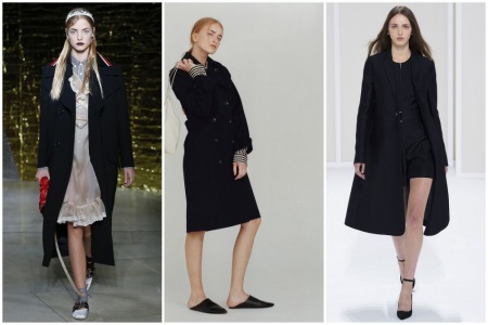 Oddly enough, but the classic black color is extremely prevalent among the spring coat models in the latest collections from famous designers. With its help, very spectacular products are created that can fit into any image and make it the most luxurious. Often they are complemented by such decorative details as metal accessories of unusual shapes, inserts made of leather or satin, slots and a variety of beads or sequins.