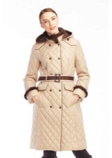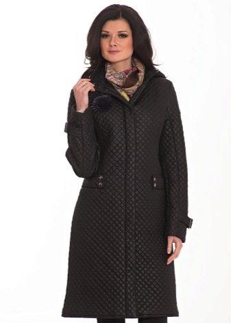 A distinctive feature of quilted coat models is stitched material in the form of small squares, rectangles or rhombs. This model, although it looks sophisticated and elegant, but still has some playful elements.