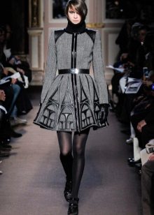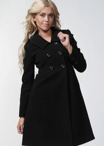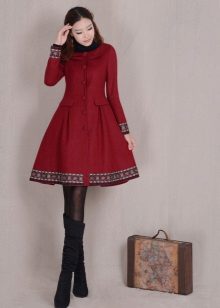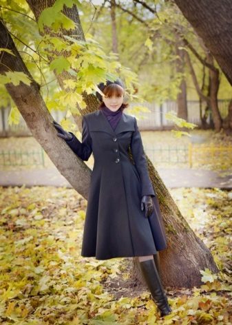 The coat in retro style has the appearance characteristic of the corresponding period. The flared lower part is made in the form of a fluffy skirt, which makes the product incredibly feminine, and the tight-fitting top gives it restraint.