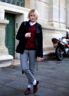 A coat, made in the style of a derby, which is characterized by straight lines and restrained silhouettes, will be a worthy replacement for the classic style. Riding clothes are also made in this style.