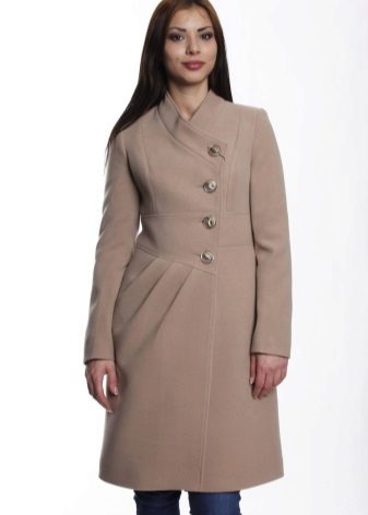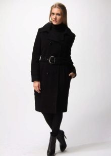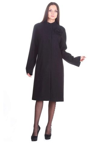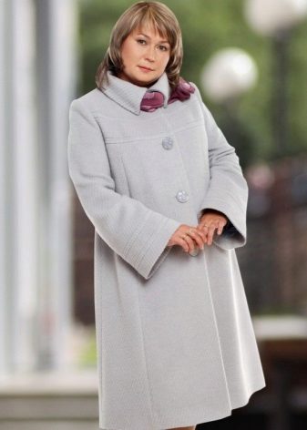 For women with a voluminous lower part, it is best to choose a model of a trapezoidal coat coat, the lower part of which expands and visually conceals the volumes. Such a model will not fit the lower body and unnecessarily focus on the shortcomings.