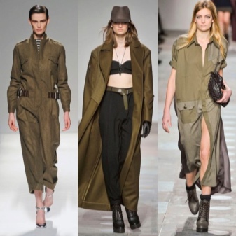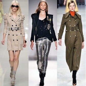 Coats in the military style and coats in the safari style have slightly similar features, since the cut and style of clothes for these styles are the same, and the color scheme is a distinctive feature. One of these styles is characterized by swamp shades, while the other is sandy.
