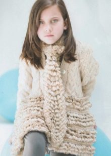 For teenagers, fashion dictates its conditions. Here, ordinary knitting is indispensable. A girl of 10-12 years old will present many requirements for such a model. For a young fashionista (turning into a girl) it is important how she will look in the eyes of her friends. It has its own competition. Therefore, when choosing a model of a knitted coat in this case, it is worth giving preference not to flowers and frills, but to length, the degree of fittedness of the silhouette, the color of the product, the pattern on it.