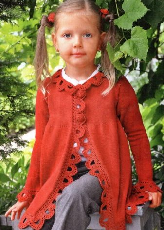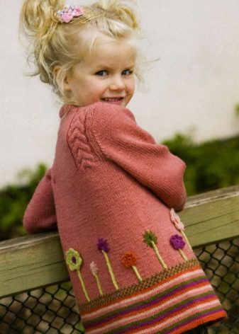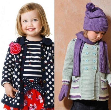 For example, the smallest one can knit a beautiful white coat or a stunningly beautiful pink item in which the girl will resemble a fairy princess. More restrained shades with bright splashes will suit older girls.
