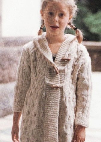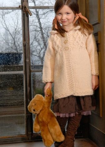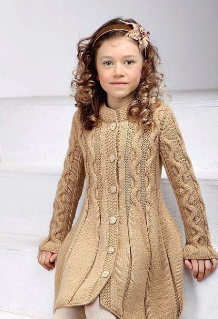 Knitted models of coats for girls are distinguished by a variety of styles, the density of knitting, and the specifics of execution. This is neither a cardigan, nor a jacket.