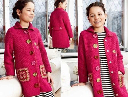 Knitwear, whether it be a variety of blouses or dresses, cardigans or coats, have some incredible charm. When choosing a model of a knitted coat for a girl, one should proceed from the size of the thing, figure and height of the child. The choice of coat according to the color scheme is based on the principles of compatibility and harmony. All elements of clothing - the coat itself and what is underneath - should be harmoniously combined. In addition, the coat should just suit the girl. Therefore, you need to try to find a model of clothing that your child will love and will wear with pleasure.