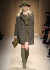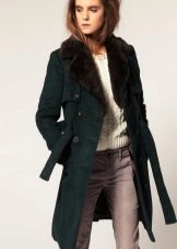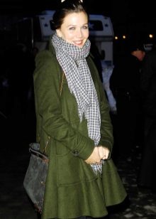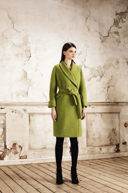 Swamp shade is one of the most relevant and fashionable this season. Restrained, dim, but very beautiful color goes perfectly with black or brown trousers. To this coat you can wear dark blue jeans, a skirt of a beautiful steel shade or green trousers.