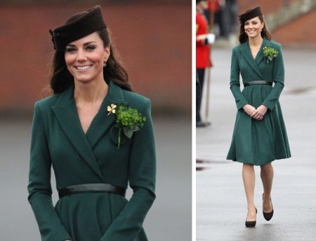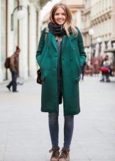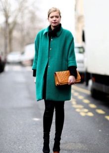 A fitted or straight coat of deep dark green color goes well with clothes made in a classic style. It can be a straight dress or a strict pantsuit. Dark green color looks great on the background of clothing in black or dark blue.