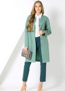 A pale green coat is best combined with clothes of the same delicate shades. Then the image will look the most advantageous. Light beige or white dress, sand or steel trousers, light blue jeans will create an excellent ensemble for such a coat.