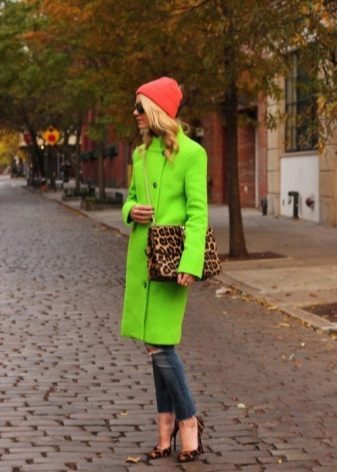 If the coat is made in a deep, saturated color, then the hat can be selected bright. For example, a hat of raspberry or violet color is great for an emerald or bright green coat.
