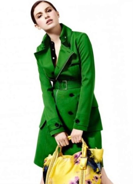 But when you want to add fresh colors to your everyday life or change something radically in your appearance, the choice falls on a coat of bright, saturated colors. Green color is one of the most popular and favorite among modern designers. It goes well with clothes of other colors, refreshes and gives positive emotions.