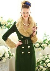In winter, green coats with fur collars come in handy. A coat with a voluminous collar made of shiny fur looks luxurious, it will give chic to any look. A red fox collar will look especially impressive with a coat of green shade.