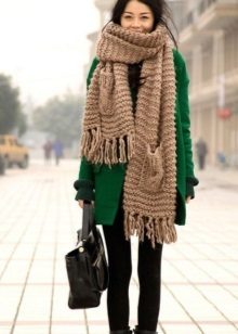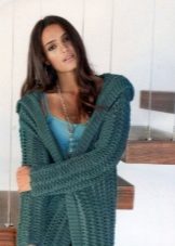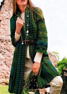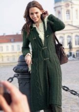 The knitted version of the green coat is good for the off-season, you can knit it with your own hands. Thick knitted patterns with beautiful patterns look very feminine.