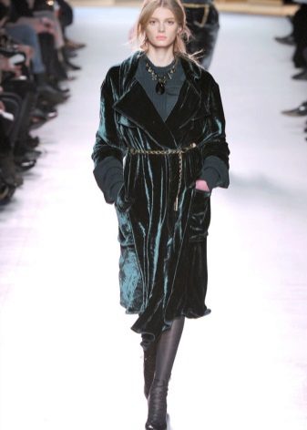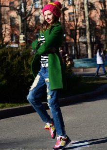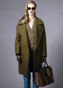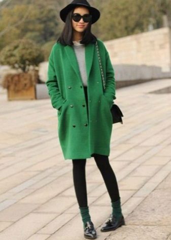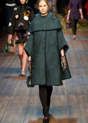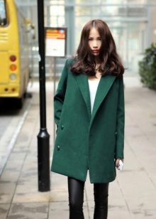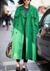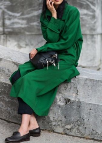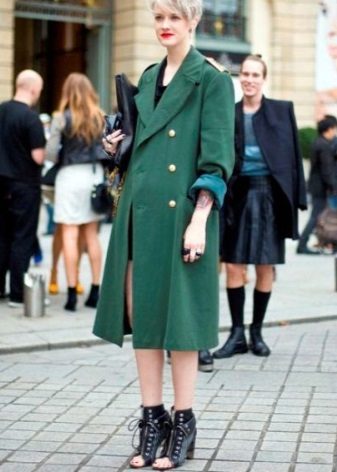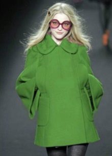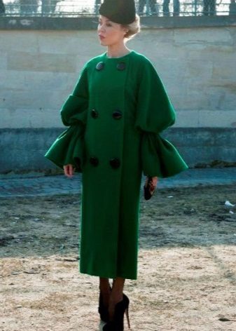 Green coat with elongated or very wide sleevesA voluminous collar or wide lapels will help you create a rather expressive and extraordinary image.