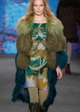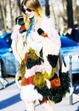 A multi-colored fur coat (patchwork) made up of multi-colored pieces of natural fur is noteworthy; the green color in such a product is adjacent to gray, brown, orange, and even blue.