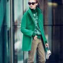 In winter coats of green color, including the classic style, ankle length is often used. Less commonly, a luxurious green floor-length coat is seen. The long version suits tall women.
