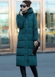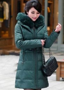 A light but warm quilted green coat on a synthetic winterizer will protect you from wind, rain and snow. Models of such a coat are winter and demi-season, it all depends on the thickness of the insulation. Such a product does not deform, repels moisture, it fits into any wardrobe and lasts more than one year.