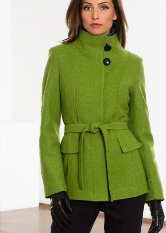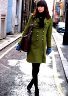 The green coat is of very different lengths, the most relevant today - above the knees. Shortened styles in a youth style can decorate any fashionista, moreover, they are very comfortable. A short version of a green coat is suitable for girls who spend a lot of time behind the wheel.