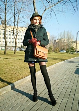 A cropped coat goes well with skinny jeans and skinny trousers, possibly leather. Shoes fit any, even sneakers. Gloves and a bag should be selected according to the color of the shoes, and a scarf and a hat - a tone darker or lighter.