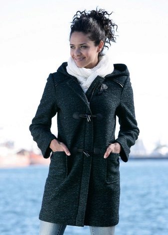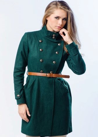 The most sought after is a traditional elegant single-breasted coat to the knee. Its distinctive features are a straight cut, narrow lapels, one row of buttons or a hidden clasp. The double-breasted model of a fitted green coat continues the theme of classic women's coats. As a highlight, designers offer elegant buttons and a contrasting edging.