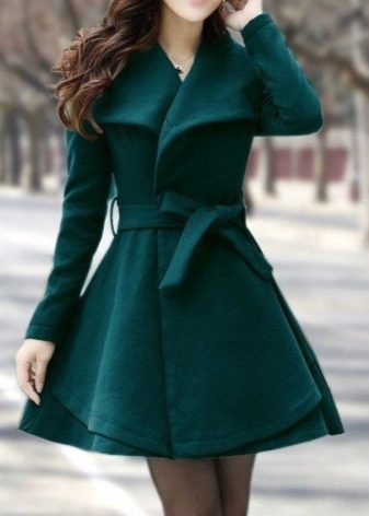 Green A-Line A-Line Coat does not constrain movements, it is flared from the shoulder itself and is able to hide all the flaws of the figure. Another comfortable and cozy model is an O-shaped cocoon coat with an arched shoulder line and a length just below the knees.
