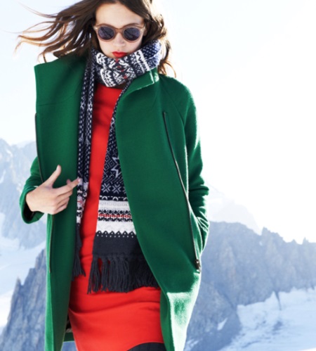 Denim fans can be advised to dilute the green-blue set with beige bag, gloves and ankle boots, as well as brown snood. Bright colorful combinations are acceptable, but their presence in the image should not exceed a couple of details.