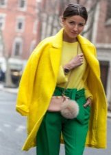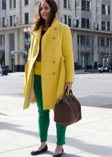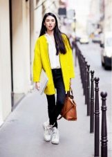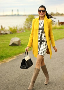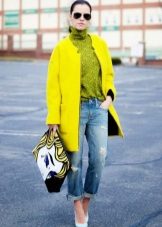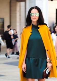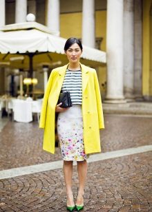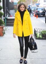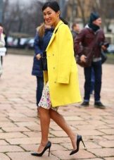 It is not easy to decide on a bright yellow coat, because this is not a dress or a blouse. Ideally, of course, it is better to have one more coat of neutral color, which you can wear at work and wear at business meetings.