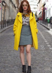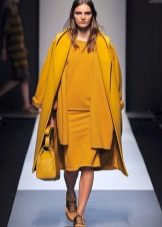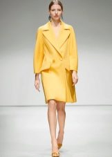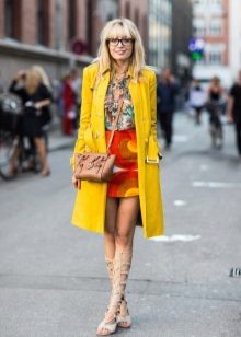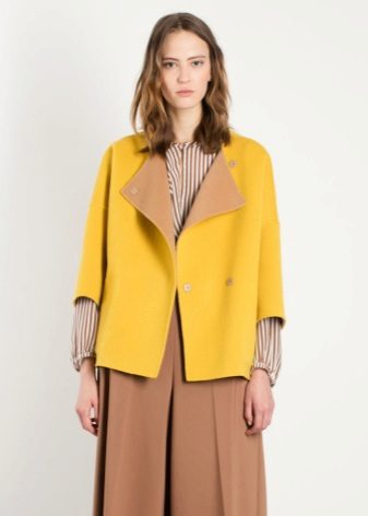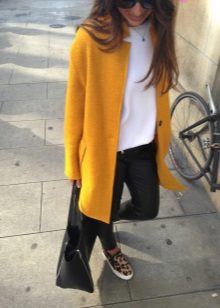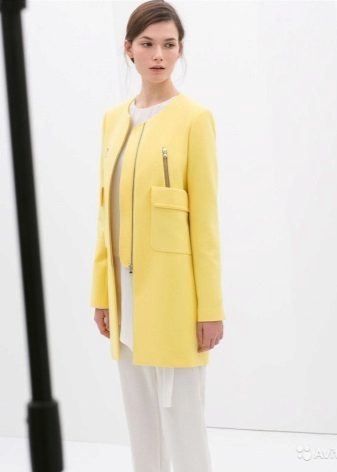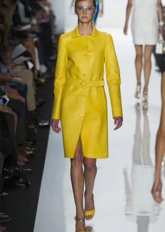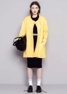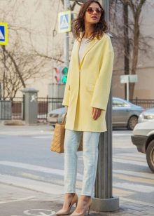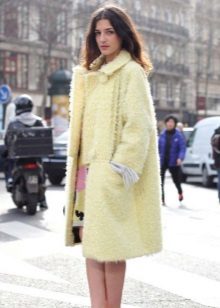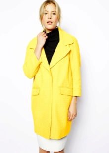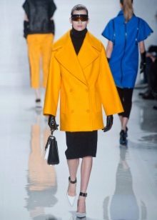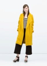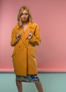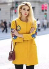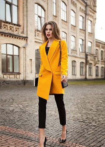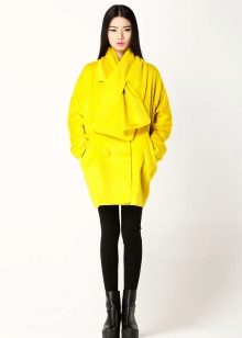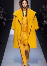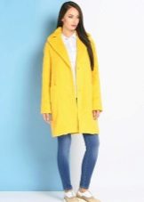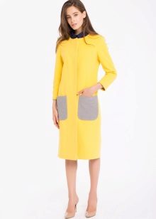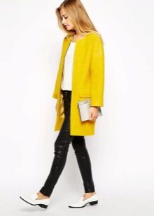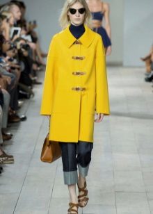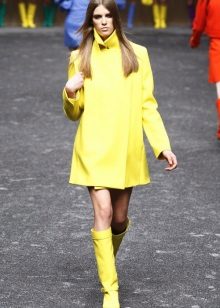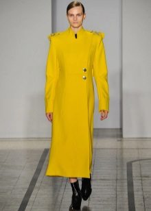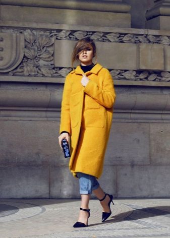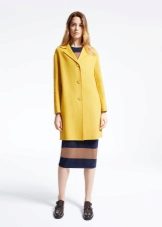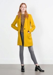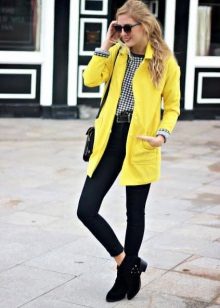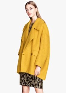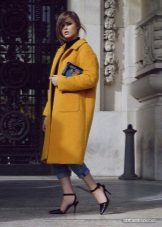 Give preference to a sleek cut and clear smooth lines. The yellow color in itself attracts attention, so the elaborate cut does not need such a coat at all.