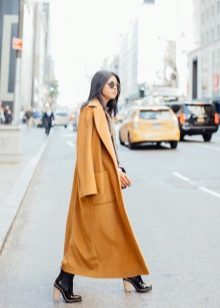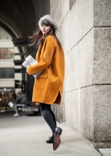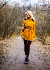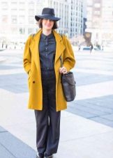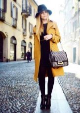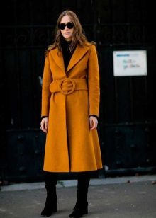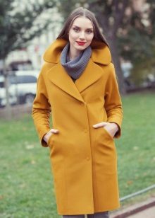 A mustard coat is perfect for every day. It will be perfectly combined with suede shoes and accessories, various natural shades. Any image with such a coat will turn out to be warm and cozy.