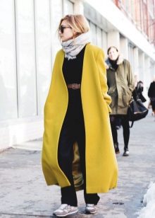 Long yellow coats will appeal to stately tall girls who are not afraid to be in the spotlight. They look very bright and attractive.