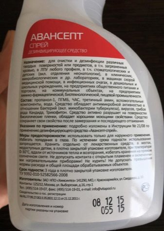 "Avantsept-spray" is a tool that is designed for quick disinfection of a small surface or a small amount of equipment. The substance can be used to treat surfaces that are resistant to alcohol and water. Application of the spray is based on irrigation until the surface is completely moistened.