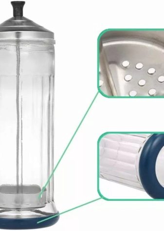 A flask for disinfection is considered an excellent option for disinfecting hairdressing tools. by immersion. This procedure is quite convenient, since scissors, combs, tweezers and more can be placed in the flask as a whole. The container for disinfection is made of high quality glass, which is resistant to aggressive chemicals. For disinfection, immersion of instruments in a flask will be quite enough for a few minutes. Then the accessories should be removed and laid out on a clean surface.