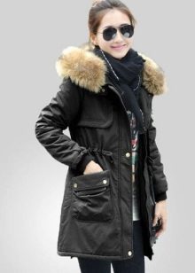 A long parka, complemented by a warm liner and a fur collar or hood, will completely replace the winter down jacket or coat.
