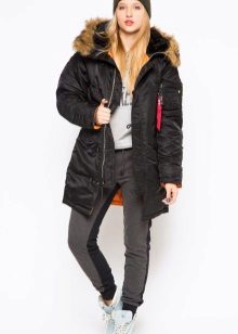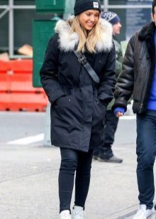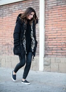 What is the beauty of black parka? Yes, in that it combines perfectly with any other wardrobe items.