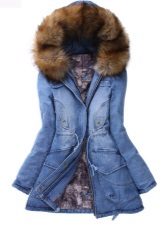 A windproof denim parka with fur is the perfect solution for cold weather.