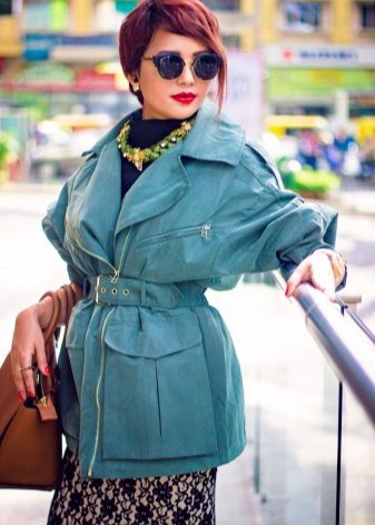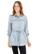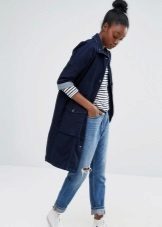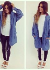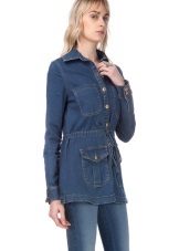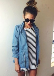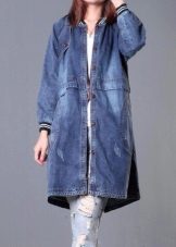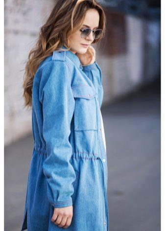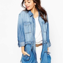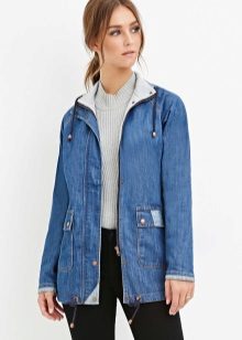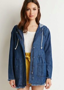 A denim parka can be successfully combined with a variety of things, you just need to show imagination and have a sense of style. You can create a successful image by combining it with jeans (just don’t choose them in exactly the same tone as the jacket), with overalls, a sweater or a turtleneck. From shoes in this case, put on sneakers or flat shoes. Short shorts or a skirt are suitable for the summer model.