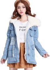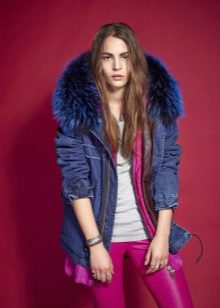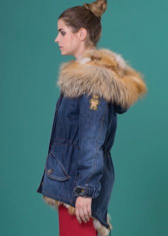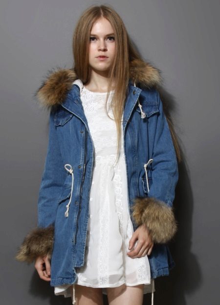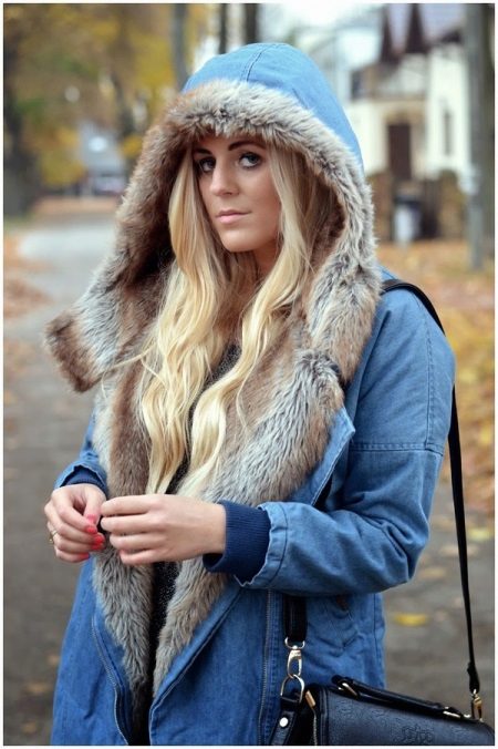 Although denim is an inexpensive youth material, natural fur trim is capable of introducing an element of luxury into the image. The fur can act as a heater inside the jacket, as well as serve as a trim hood and cuffs. If you plan to wear a denim park for several seasons, then you should choose faux fur that will not fall and grease. Another option is natural, but with high wear resistance (sheepskin or raccoon).For example, rabbit fur will look messy after a couple of seasons, and your jacket will lose its presentable appearance.
