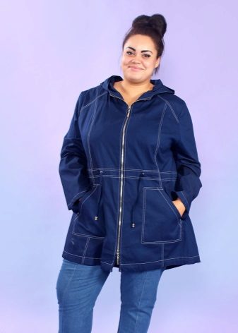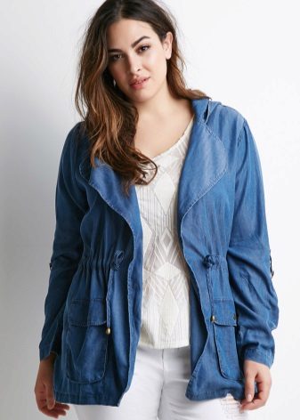 Curvaceous forms are not a reason to abandon a stylish jeans parka. Such girls just need to choose the right model - shortened and fitted, which will hide the excessive volume of the hips and emphasize the waist. This is especially true if you are still not tall.