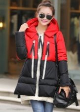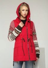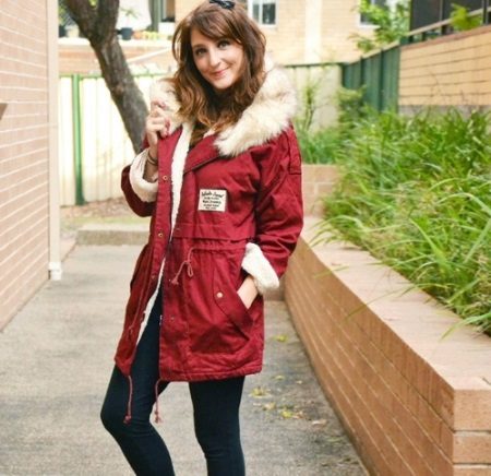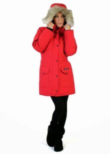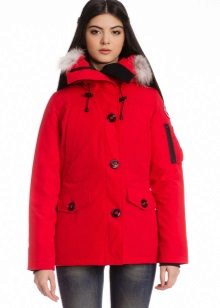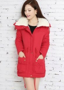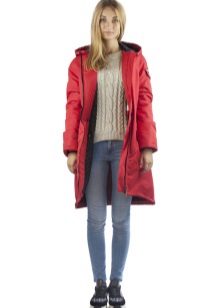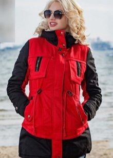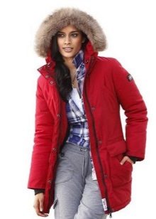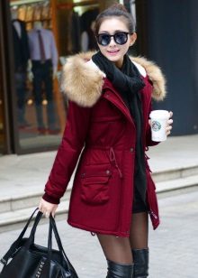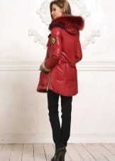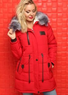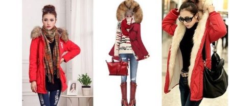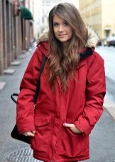 The red color of the jacket-parka can appear in various original combinations. We dwell separately on such an option as a red-blue parka. These colors can be combined very nicely in outerwear (only blue should have a very dark shade so that the item does not look tasteless). For example, blue can be sleeves and a strap with a fastener, the rest of the jacket is red. It looks interesting model, in which the top is made in one color, and the bottom in another. But these combined things are only suitable for slim girls. The highlighted in red part of the figure should be impeccable shape, since the main attention will be focused on it.