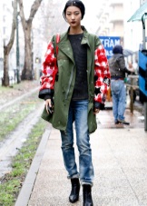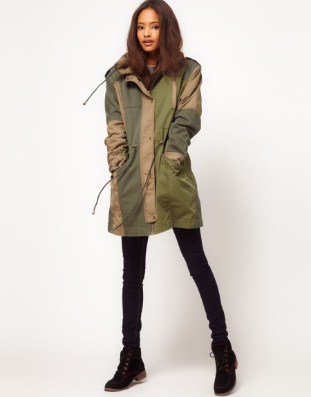 When creating an image, remember the rules for combining colors. For gray-green or khaki jackets, choose clothes in soothing colors. Avoid bright flashy catchy colors. Otherwise, you will look awkward. Clothing of any color is suitable for a brown jacket, while green looks good with gray and beige.