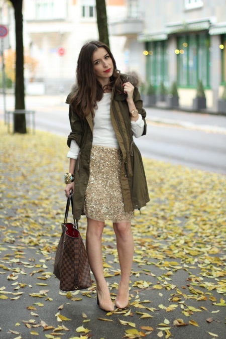 You should only avoid combining parkas with strict classic clothes in the form of a suit or dress on the floor.