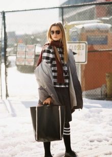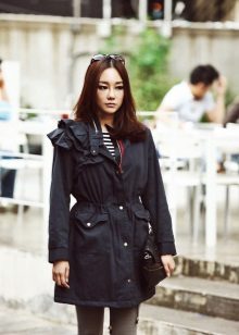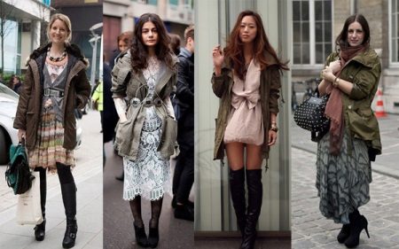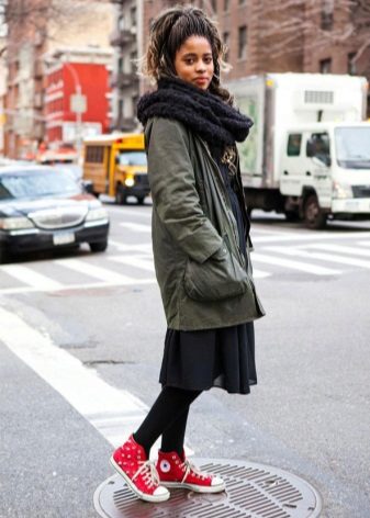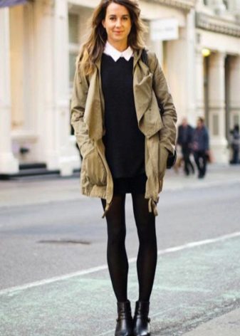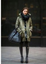 - With a dress. You should not be limited to just trousers, because a short parka will look great with a dress. The model can be selected at your discretion, it all depends on your preferences. The game in contrasts looks great - a combination of a parka of coarse fabric with a light airy dress in a light shade. A casual dress will look good in a sporty style, complemented by comfortable sneakers.