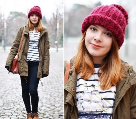 Want to get a more refined and elegant look? Wear a parka with a volumetric textured beret or hat with a veil. But at the same time, the rest of the details of your image should be perfectly thought out, corresponding to this unusual headdress.