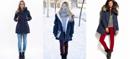 What is a good blue parka? The fact that it does not look as corny as a black parka or khaki. But at the same time, she is not catchy and not easily soiled, no need to rack her brains over what clothes to combine with. A scarf, shoes and a bag of the most incredible colors will suit her. It will look especially successful with clothes of yellow, olive or red color.