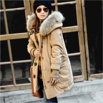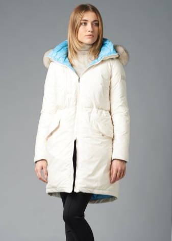 Women's parka has a straight fit. Its length varies from the middle of the thigh to the knee. At the waist or bottom there is a drawstring drawstring with a drawstring, elastic or a belt. Mandatory elements of the parka are large pockets and a hood, both simple and with a fur lapel or fur inside.