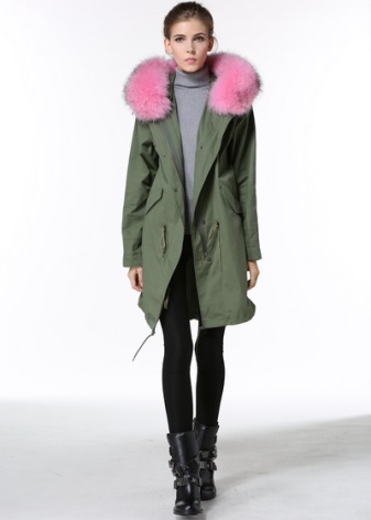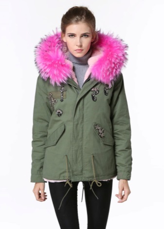 Parks with multi-colored faux fur - with white, pink, blue and other bright colors are actively breaking into fashion. With high-quality performance, artificial fur can give odds to natural. The fur can be decorated with leopard print and ombre effect.Manufacturers are trying to create attractive and high-quality models.